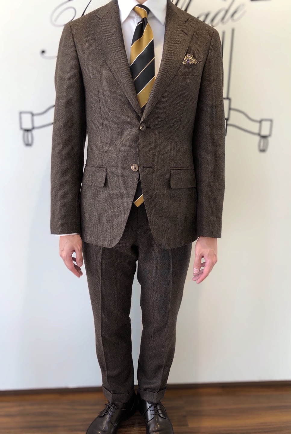 CANONICO社の生地による、グレンチェック柄のスーツです。