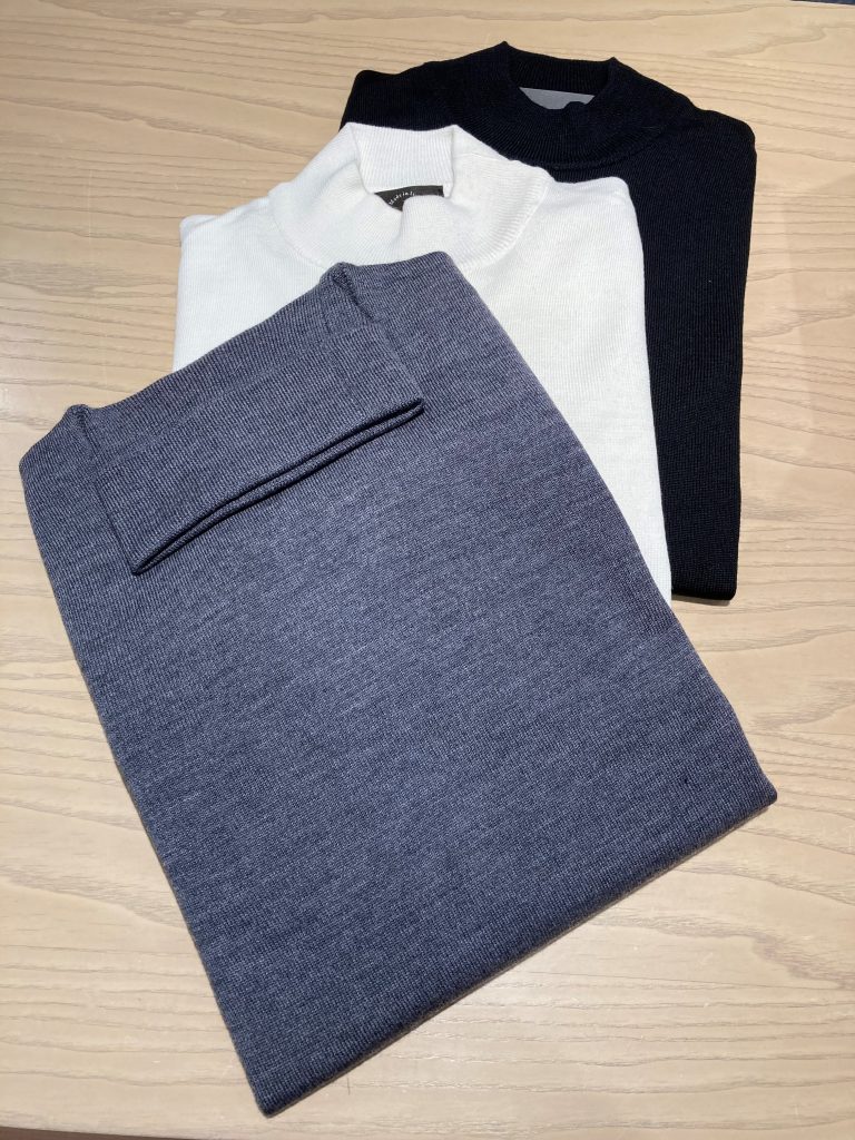 タートルネック:WHITE・GREY・BLK ¥15,000(税抜き)