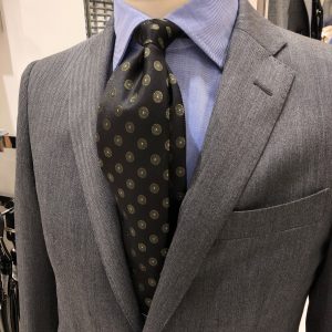グレースーツに非常に合わせやすく、グレースーツにブラックタイは合わせとして1本持っておくのがおすすめ!