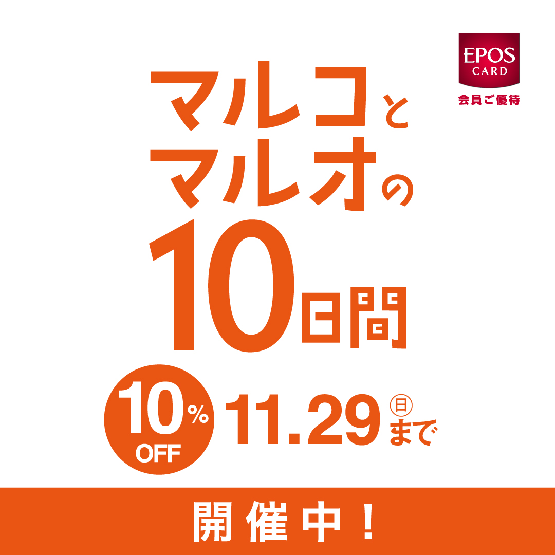 11月20日~29日まで博多マルイ館内マルコとマルオの10%offキャンペーン実施中です。