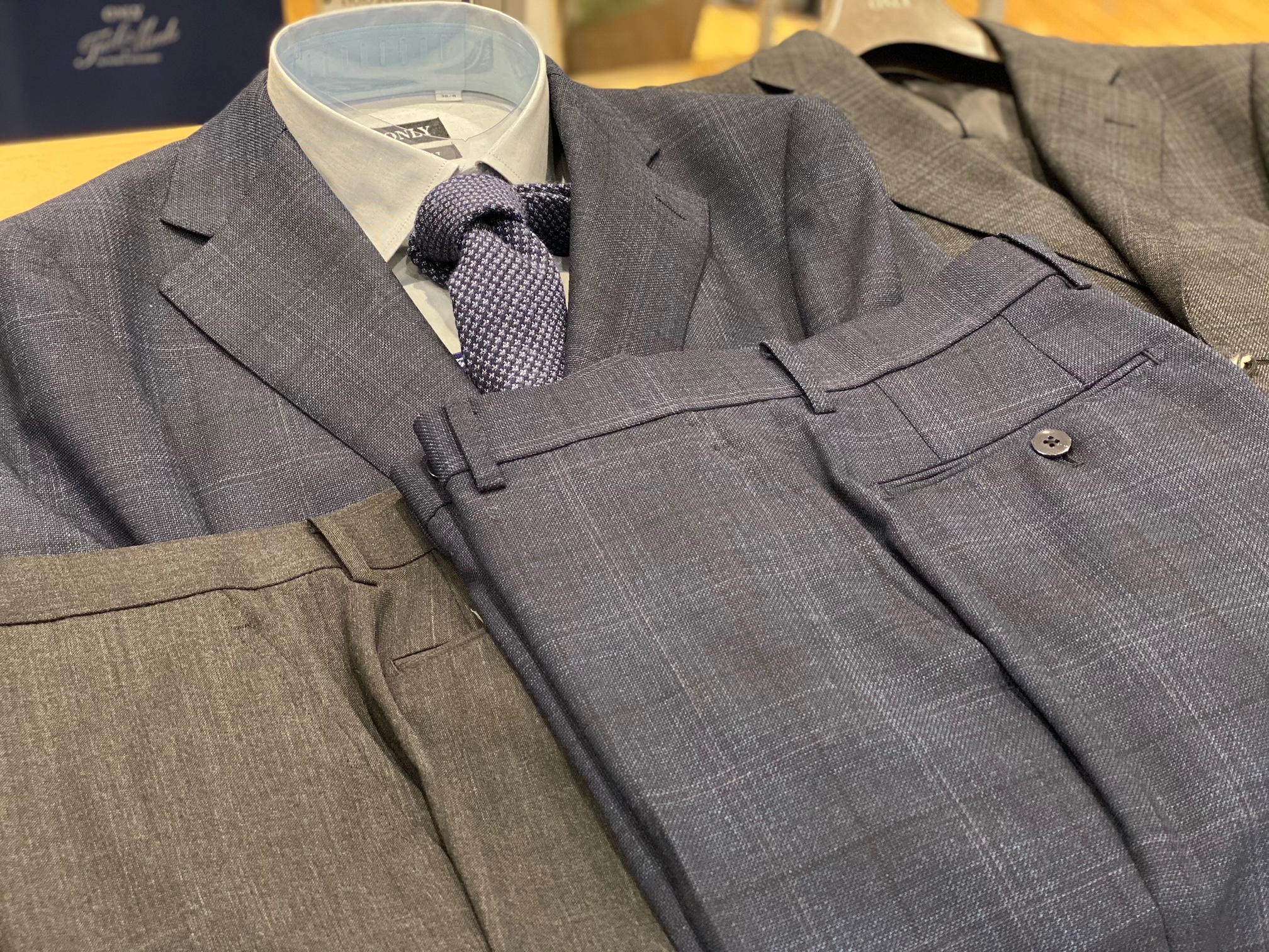 ②共生地+別生地のパンツがついたスーツとジャケパンスタイルが1着で叶う2パンツスーツ
