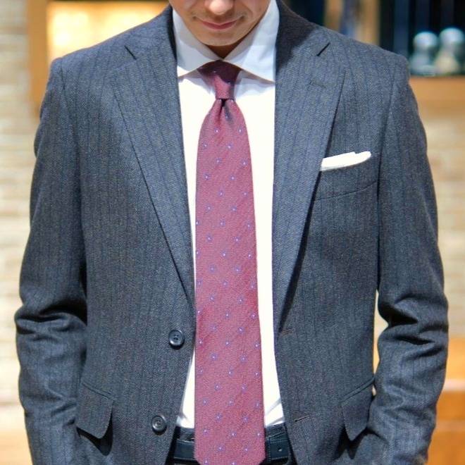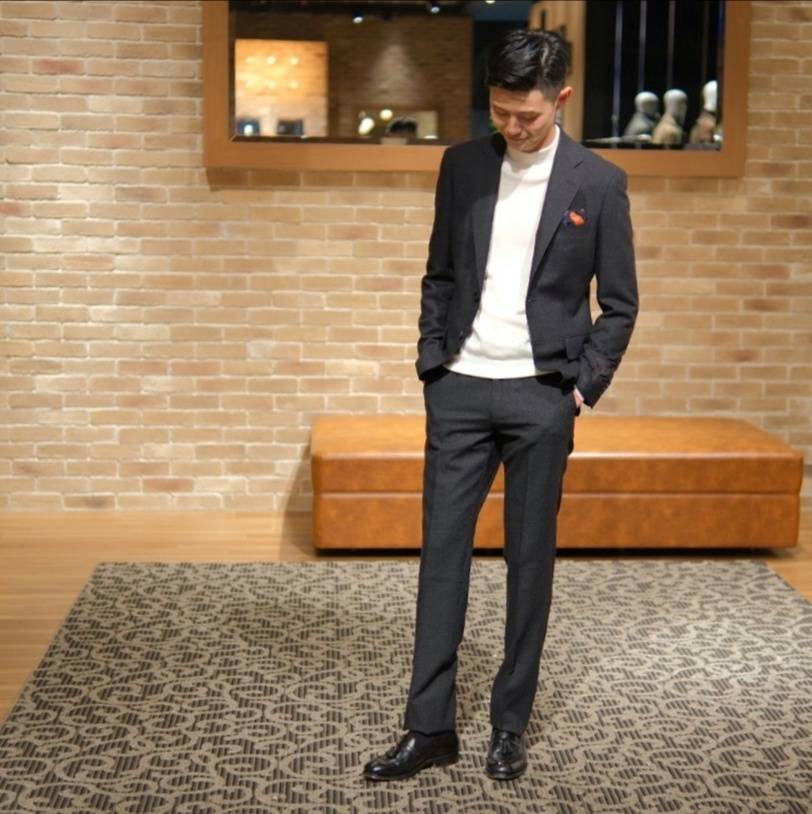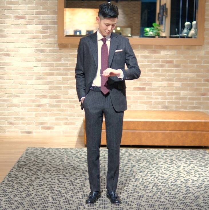 こちらも同じくカシミアブレンドの生地を使用したスーツ。