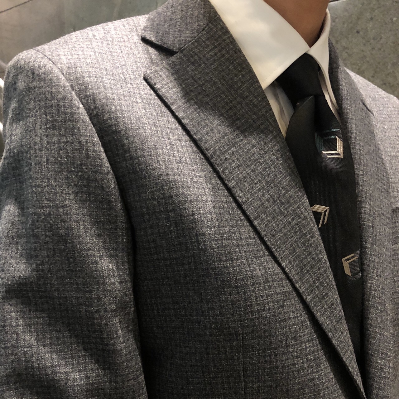 王道のチャコールグレーに薄いブルーのウィンドペーンをあしらい、