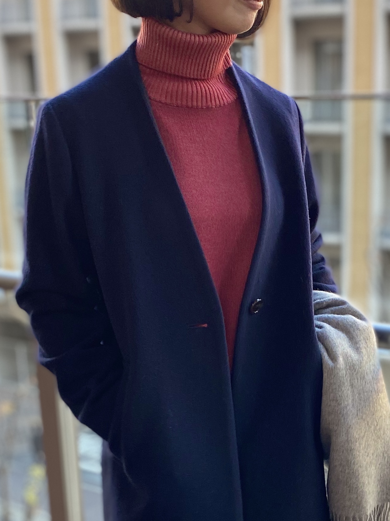 ウールコートなのでしっかり暖かく、