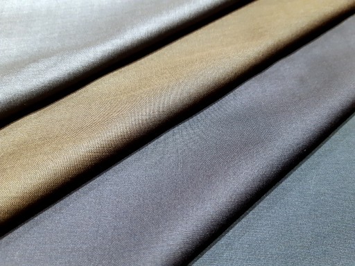 このモヘアが混紡される事で、生地に独特の光沢、ハリ・コシとシャリ感が生まれます。