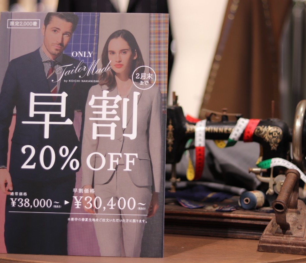 今回ご紹介するのは年に2回のオーダーフェア【早割】です。