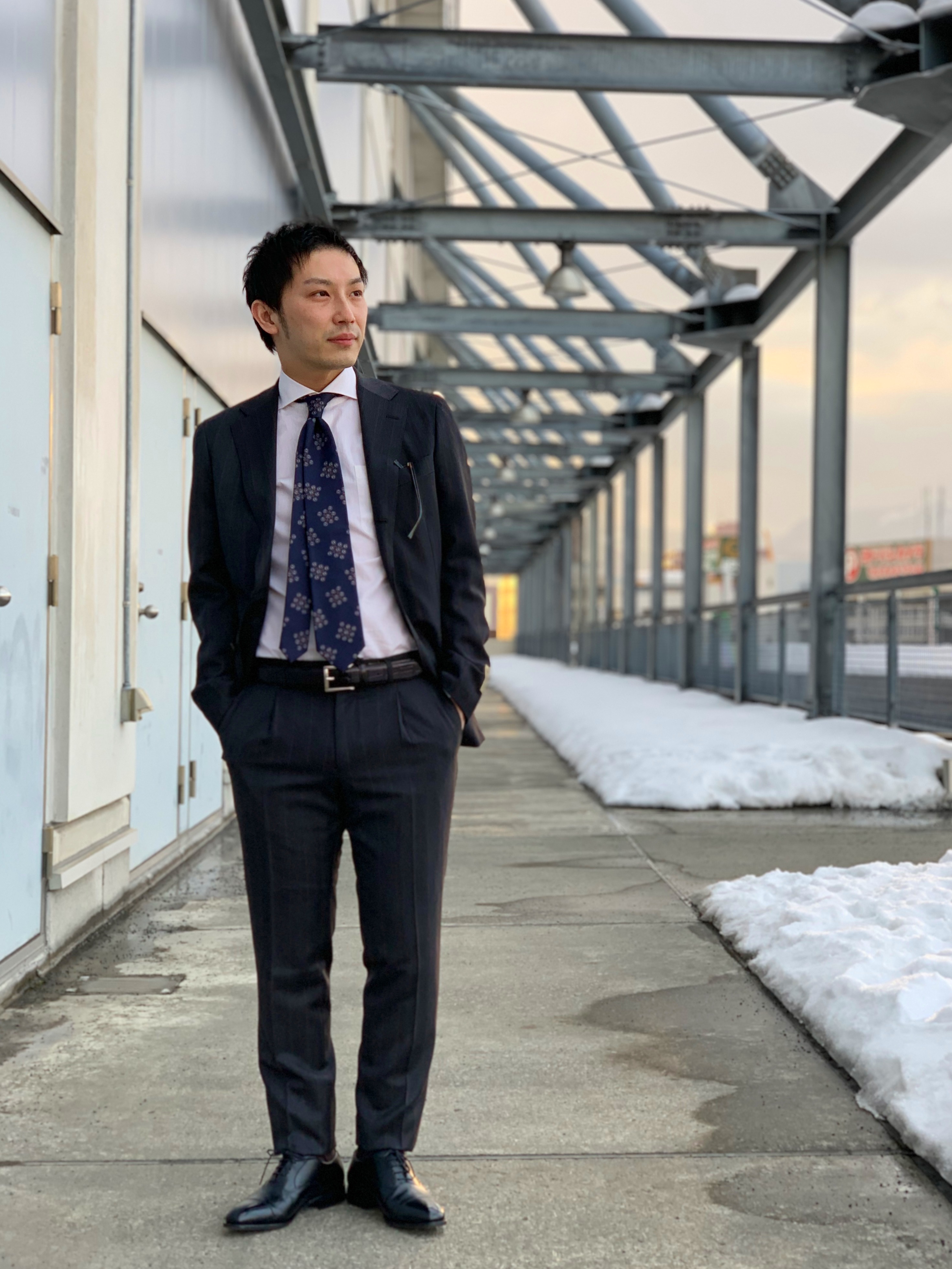 白シャツにイエローのネクタイでアクセントを入れてみました(^^♪