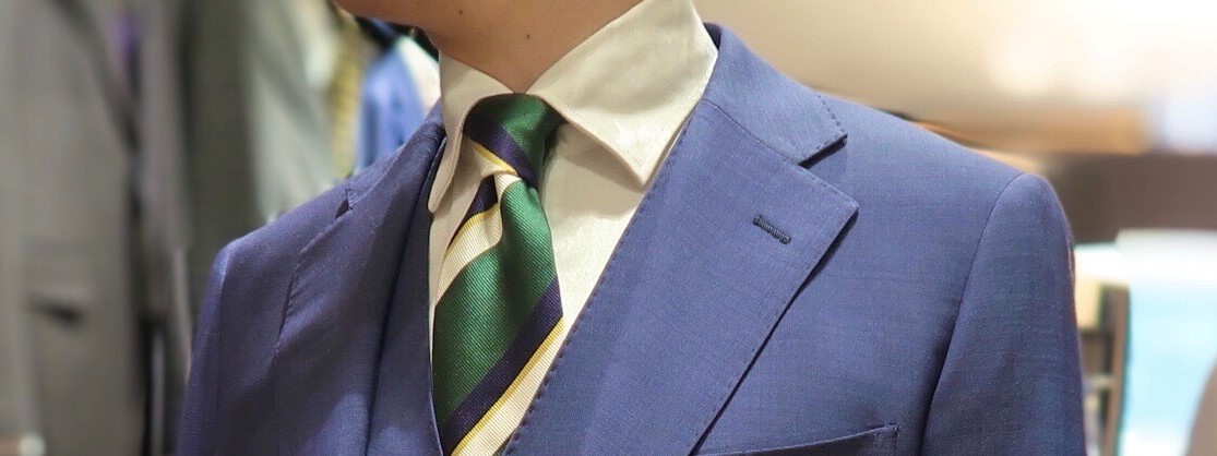Vゾーンも爽やかに、発色のいいグリーンのネクタイでご用意。