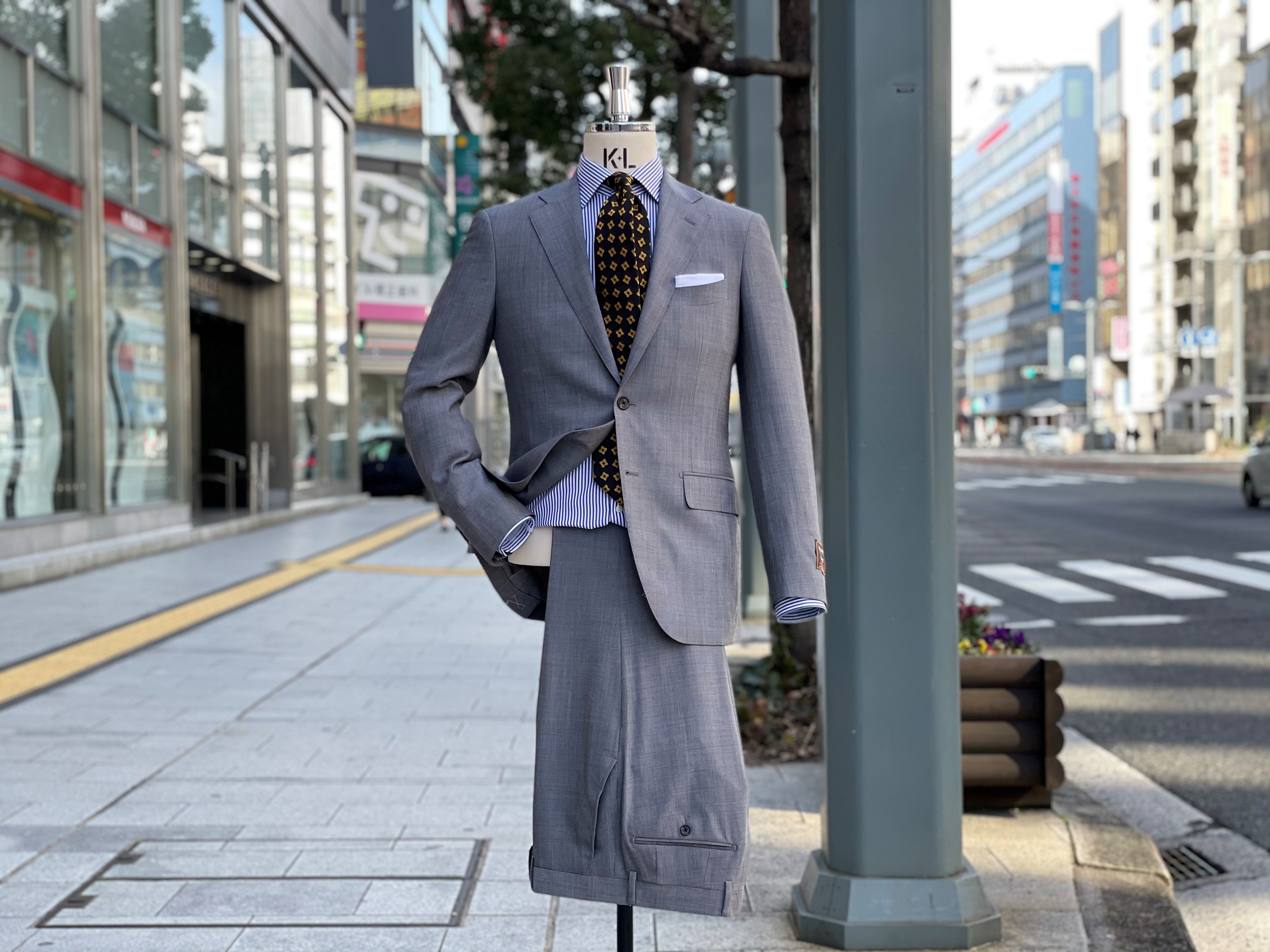 お手持スーツの中にライトカラーが1着はいると、着こなしのバリエーションが増え、