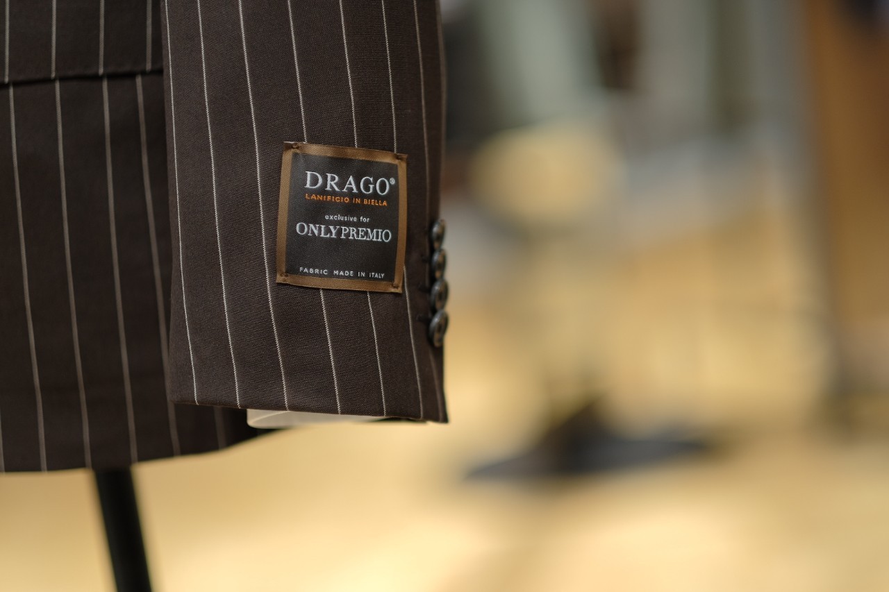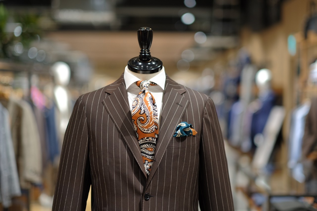 発色の良いブラウンベースにはっきりとしたチョークストライプ