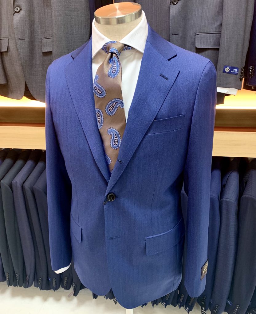 グレーもネイビーもそうですが、トレンド感としてダーク調で控えめな柄が多く、ビジネスで取り入れ易い色柄の生地になっております。ネクタイ、シャツを選ばず、万能な生地と言えます。