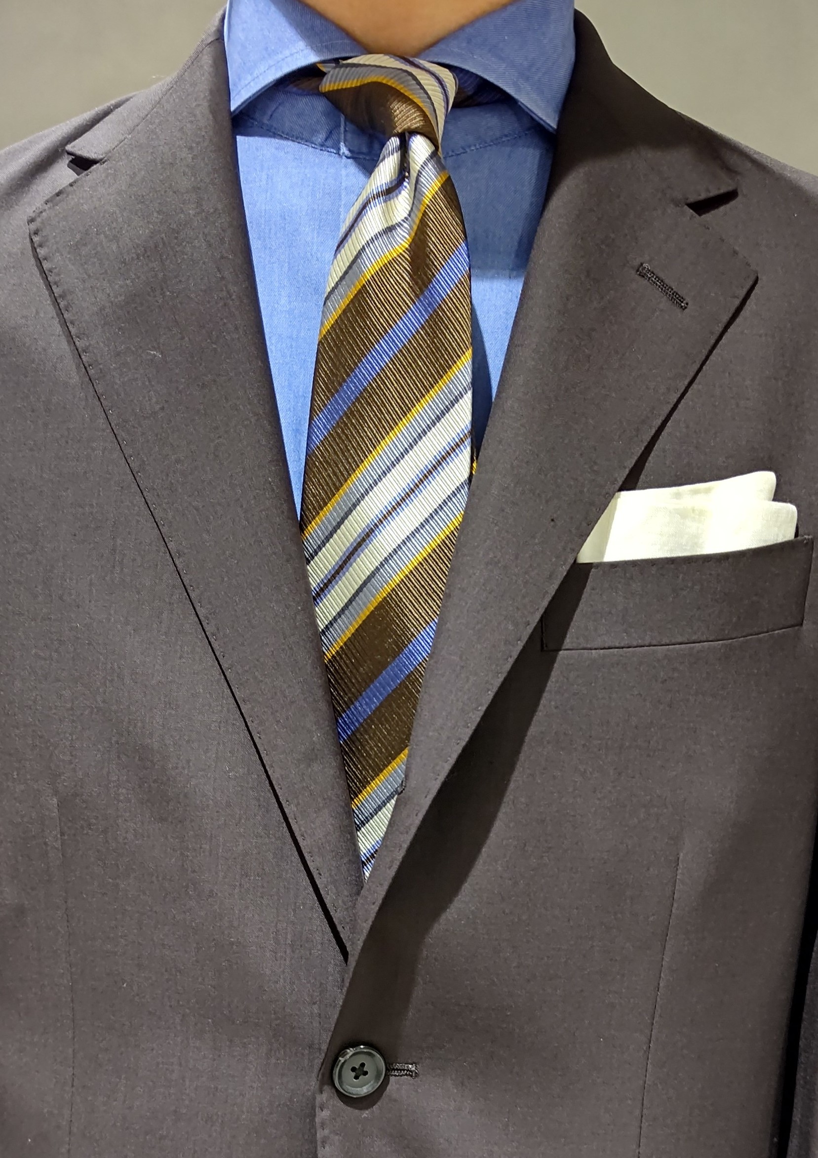 ただただ入荷したネクタイを紹介しても面白くないと思いますので、Vラインのコーディネートと一緒にご紹介致します‼