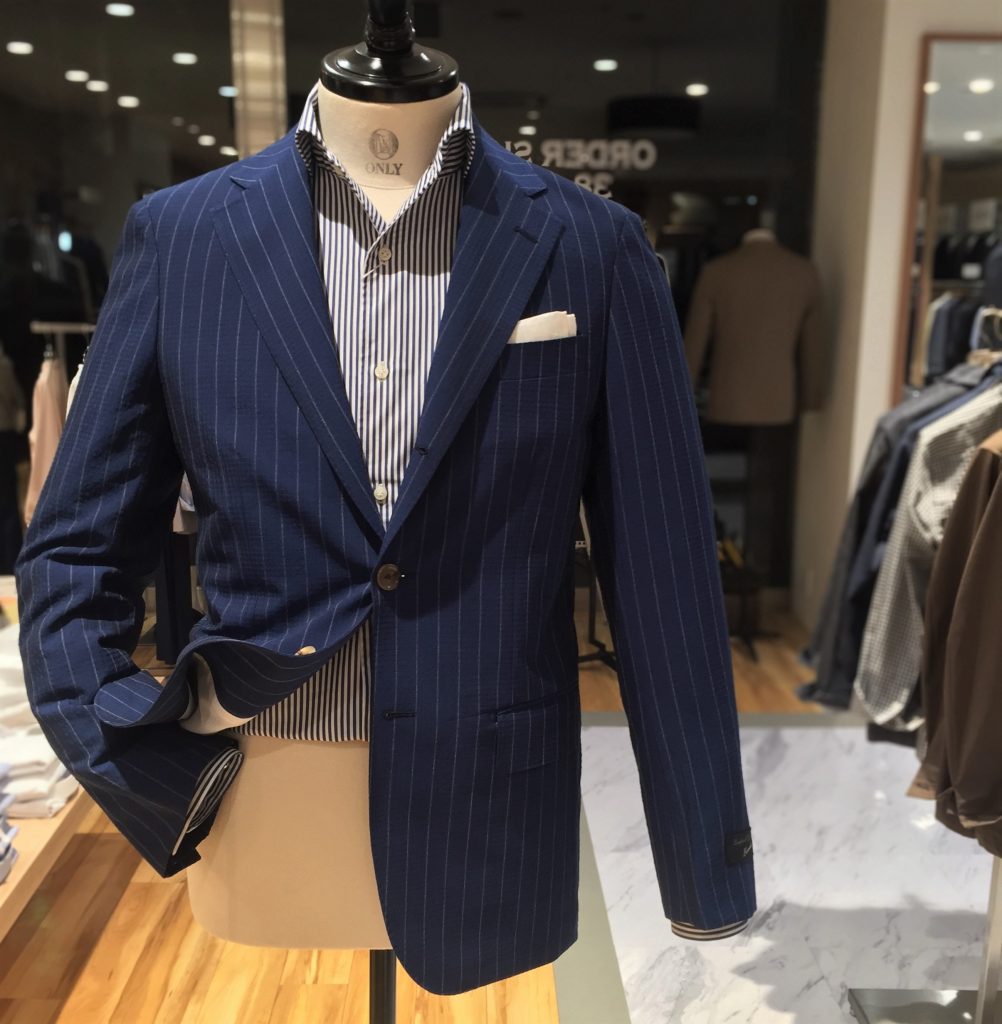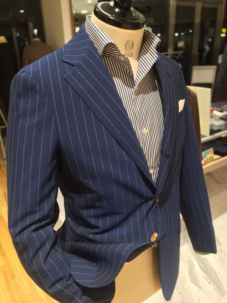 こちらはシアサッカー生地のスーツでございます。