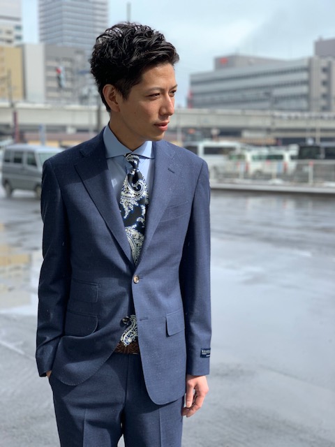 続いては定番ネイビースーツ。