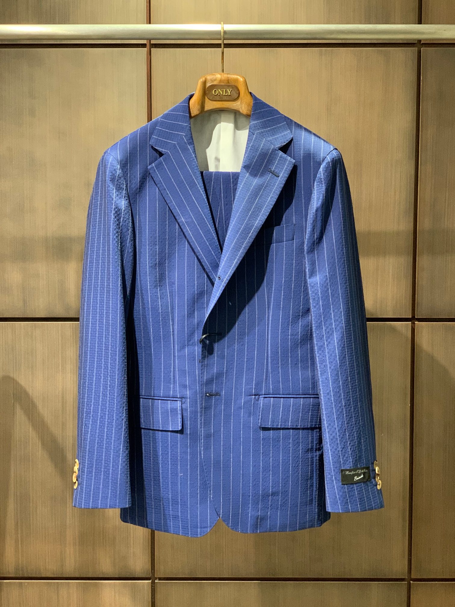こちらのテーラードライン新作生地は既製品での販売もあるため、完成品を見て頂けるので、
