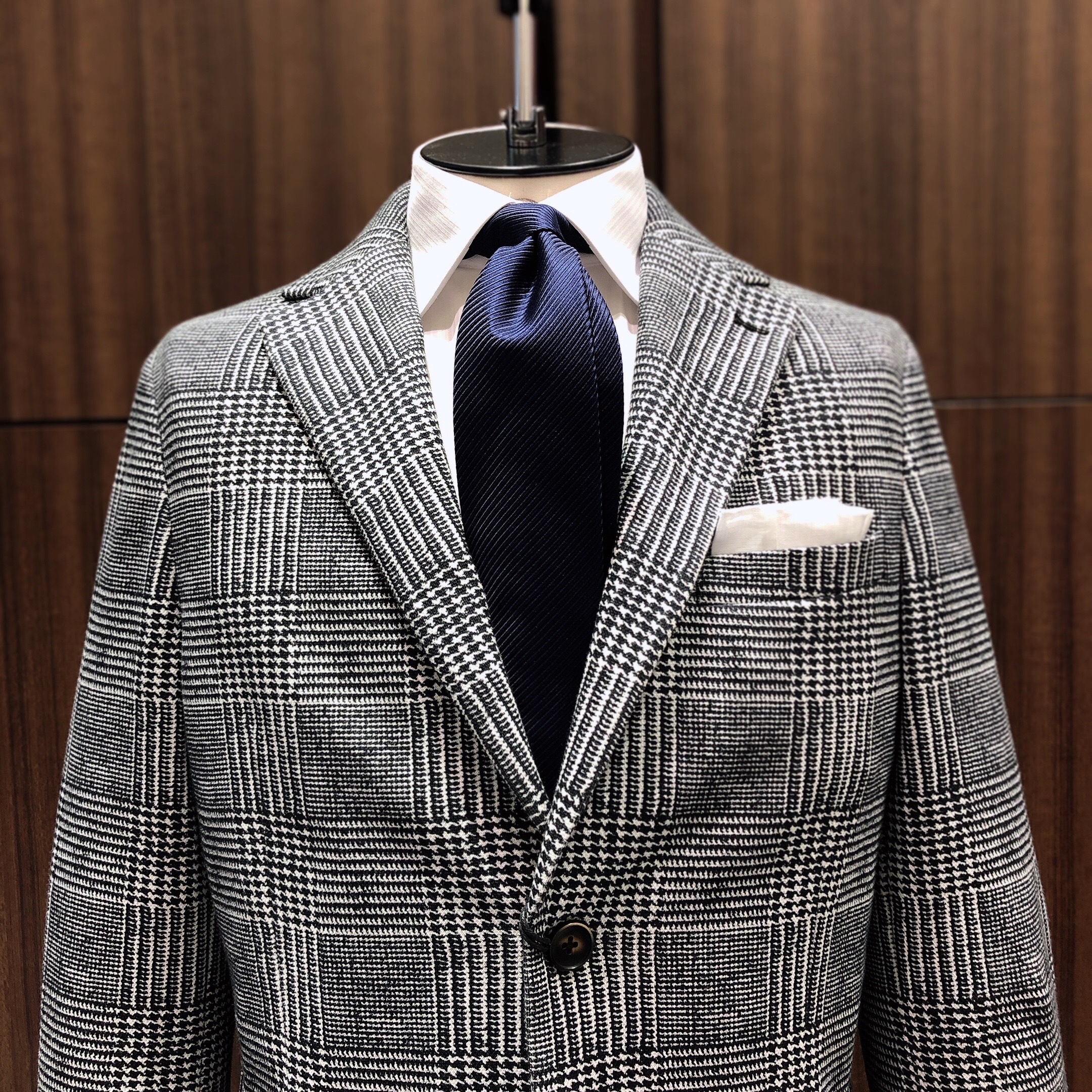 こちらのジャケットは、最近雑誌などでも良く見かけるグレンチェック柄。