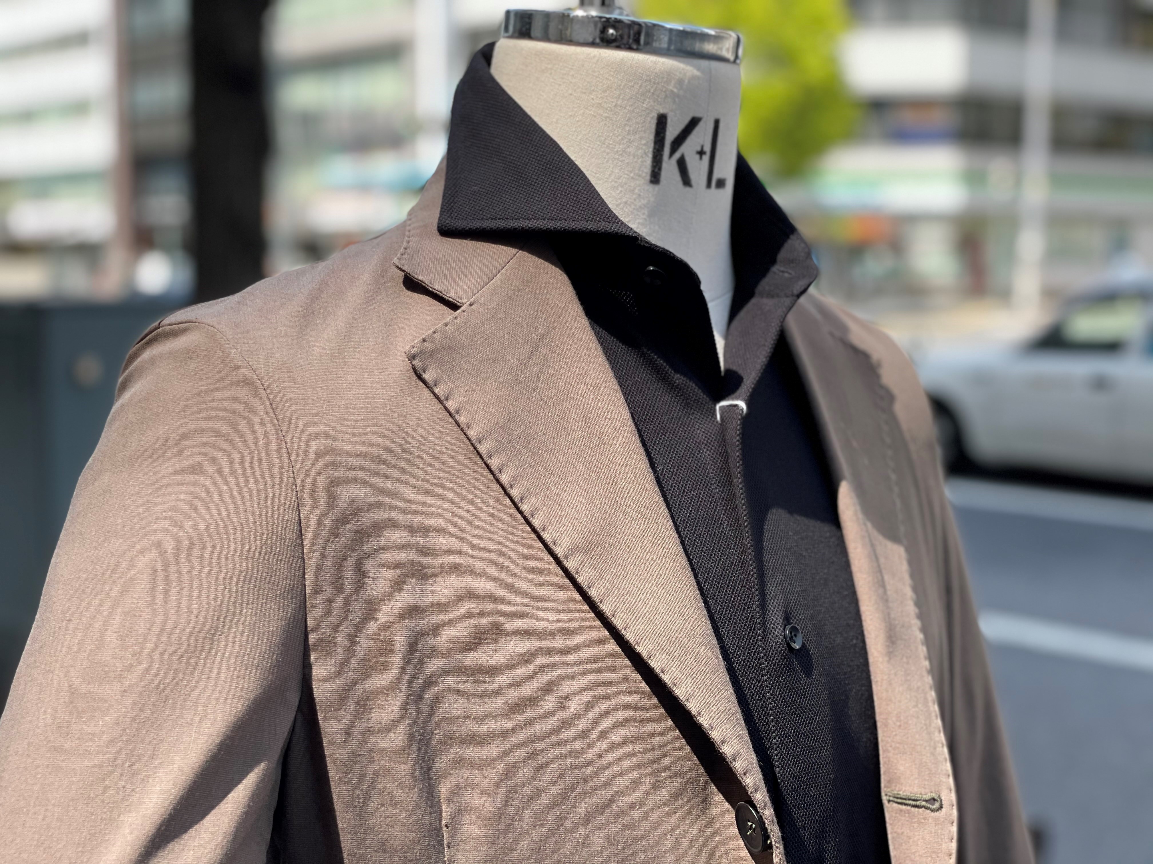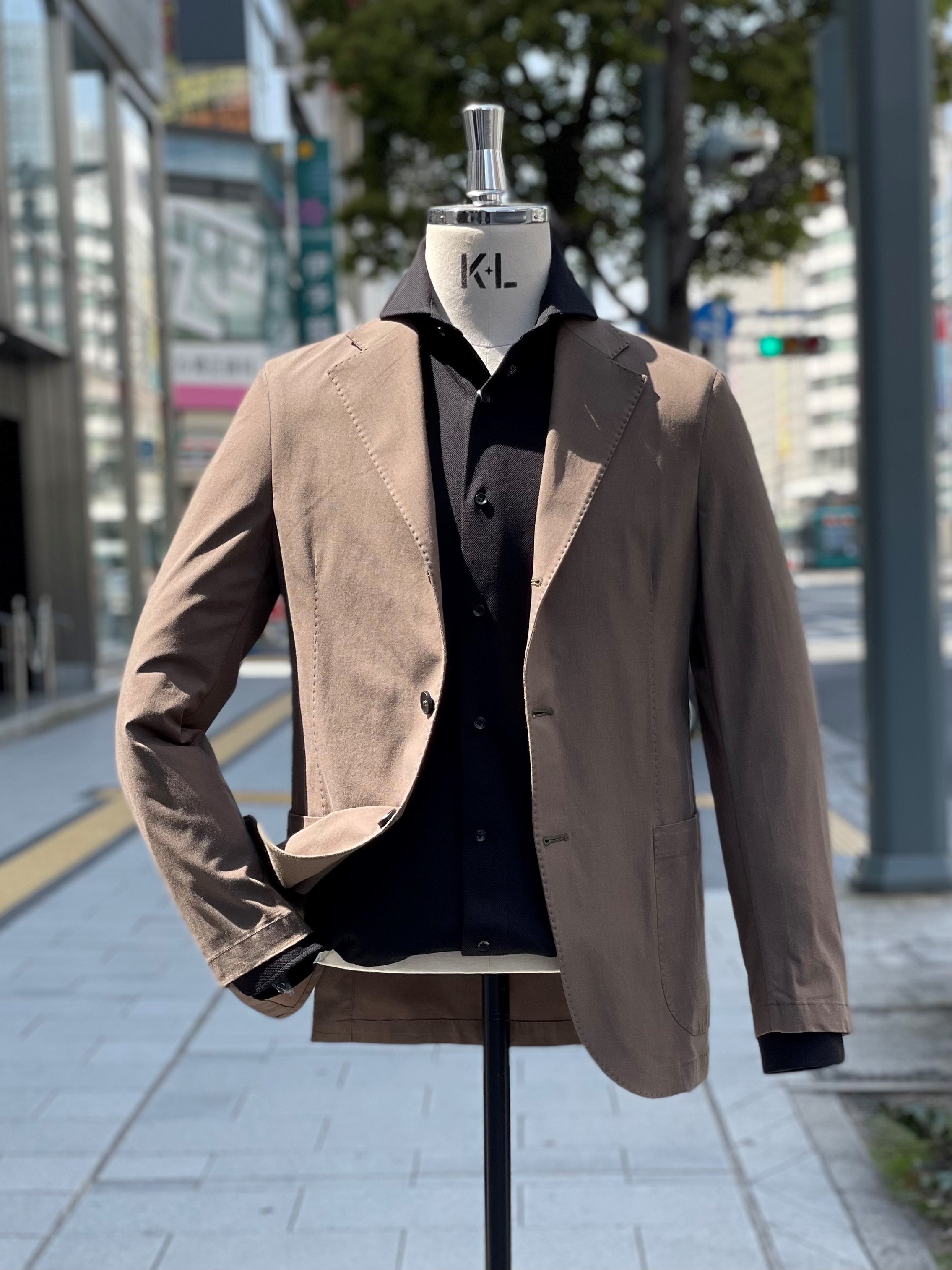 リネン混のハイパーストレッチ素材を用いたイタリア製のジャケット。