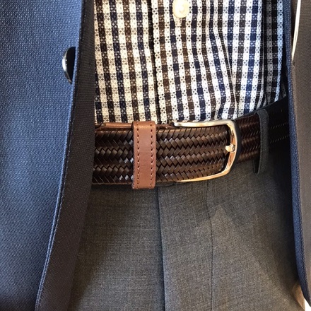 レザーにレーヨンゴムを編み込んだストレッチの効いたベルトです。