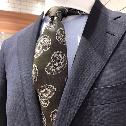 英国的なクレリックシャツとペイズリータイは好相性です〇。
