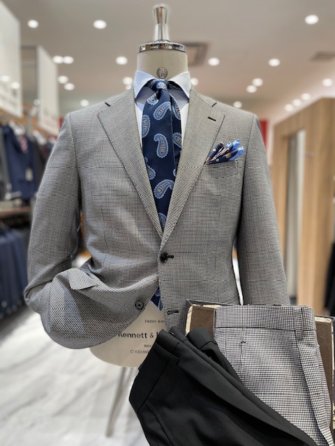 こちらのスーツは、共生地のパンツと別生地のパンツが1本ずつセットされている「プラスパンツスーツ」です。