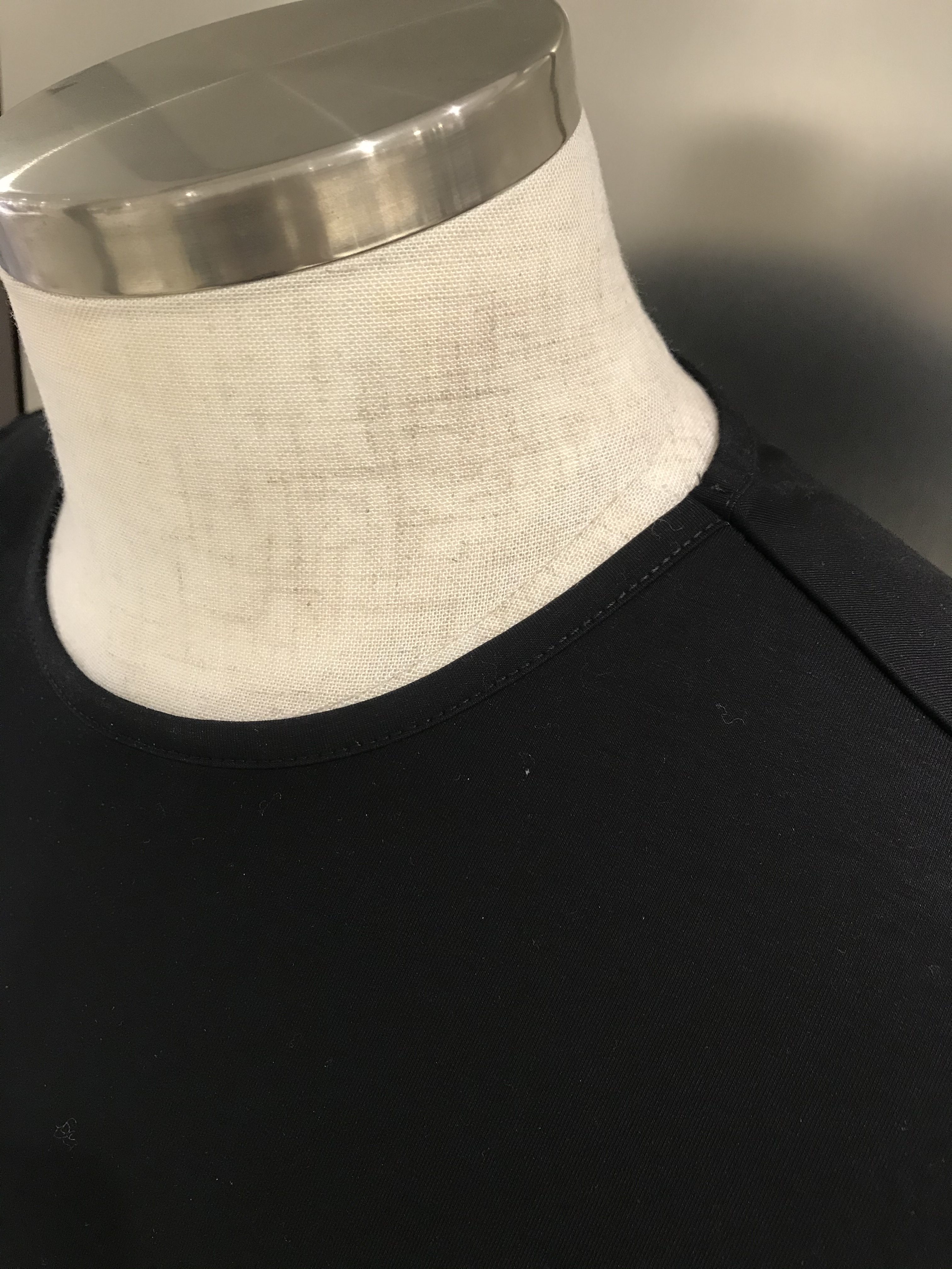・ネック部分はリブではなく共生地を使用する事でスマートで上品な仕上げとなっています。