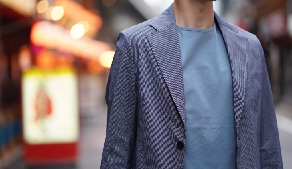 イタリア製ならではの立体的な肩回りと、一枚衿で仕立てられたジャケットは、