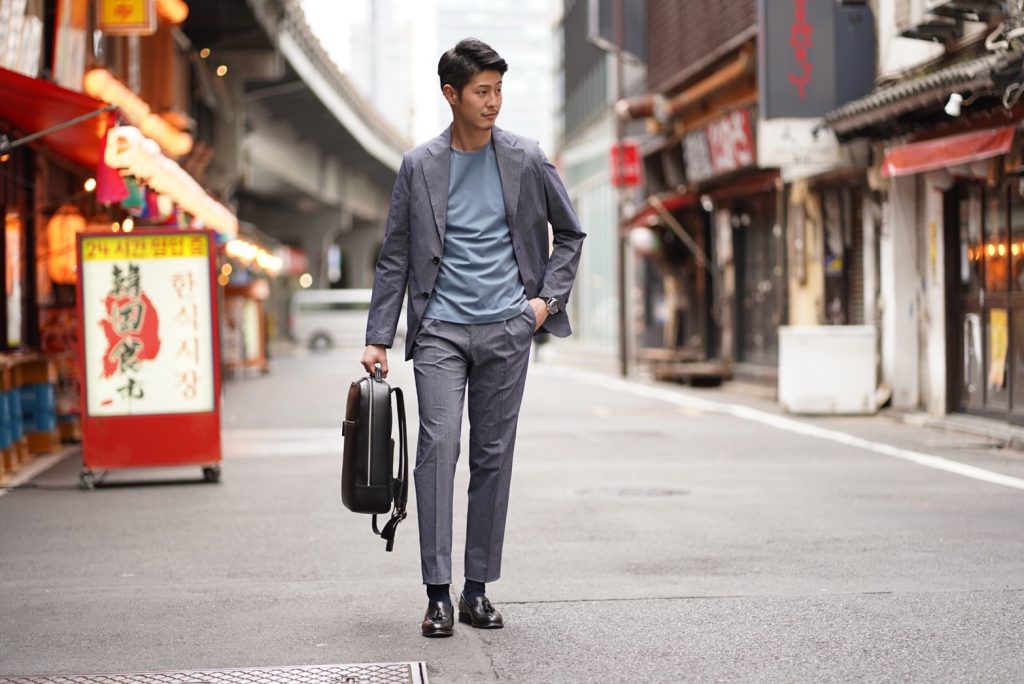 日本製のハイパーストレッチ生地が、アクティブなビジネスマンを支えてくれます。