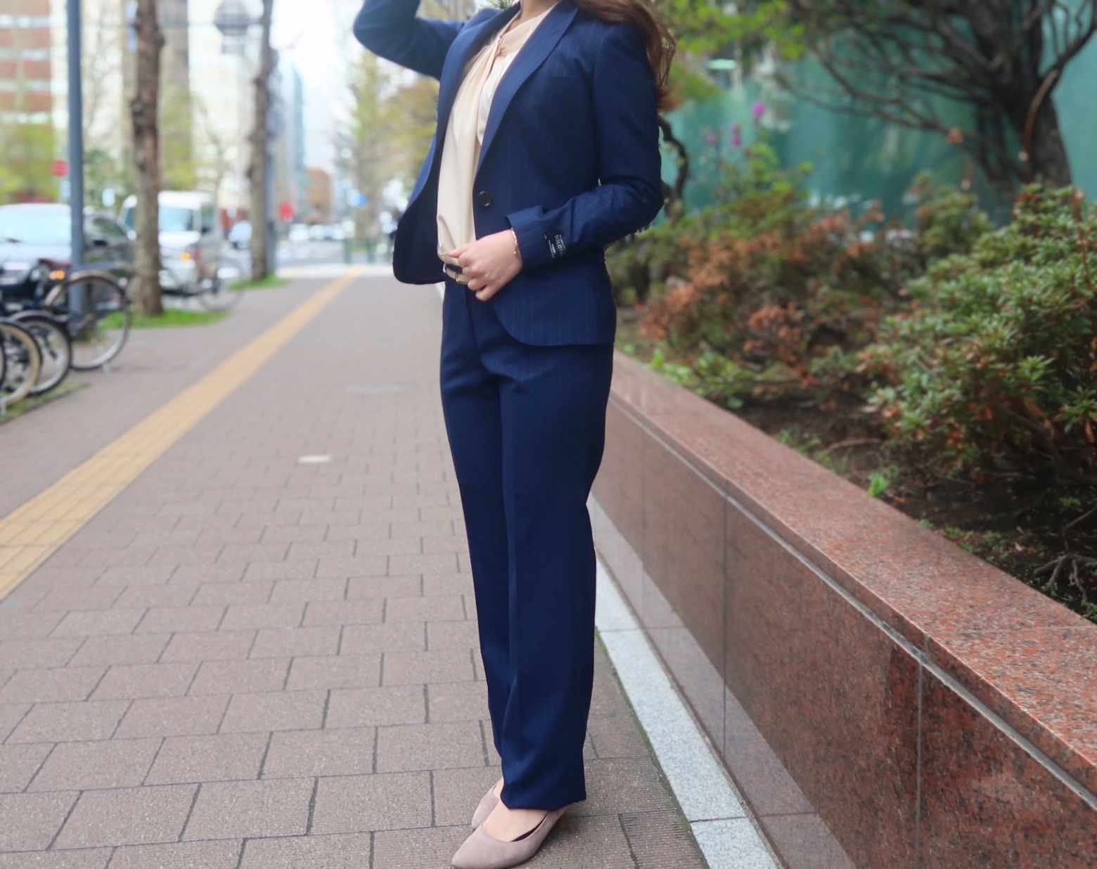 インナーは淡いベージュで合わせ、カラーバランスもバッチリ✨