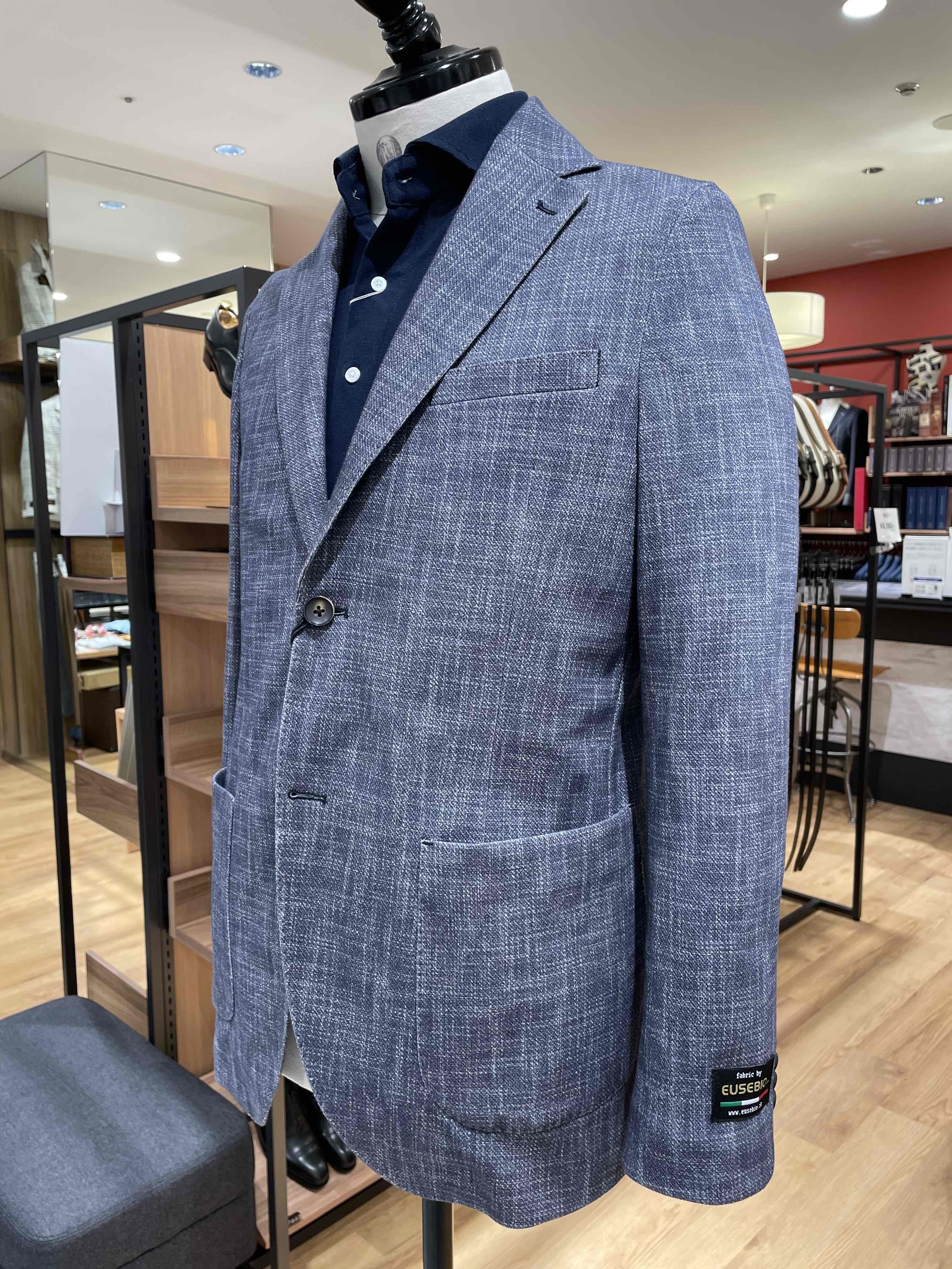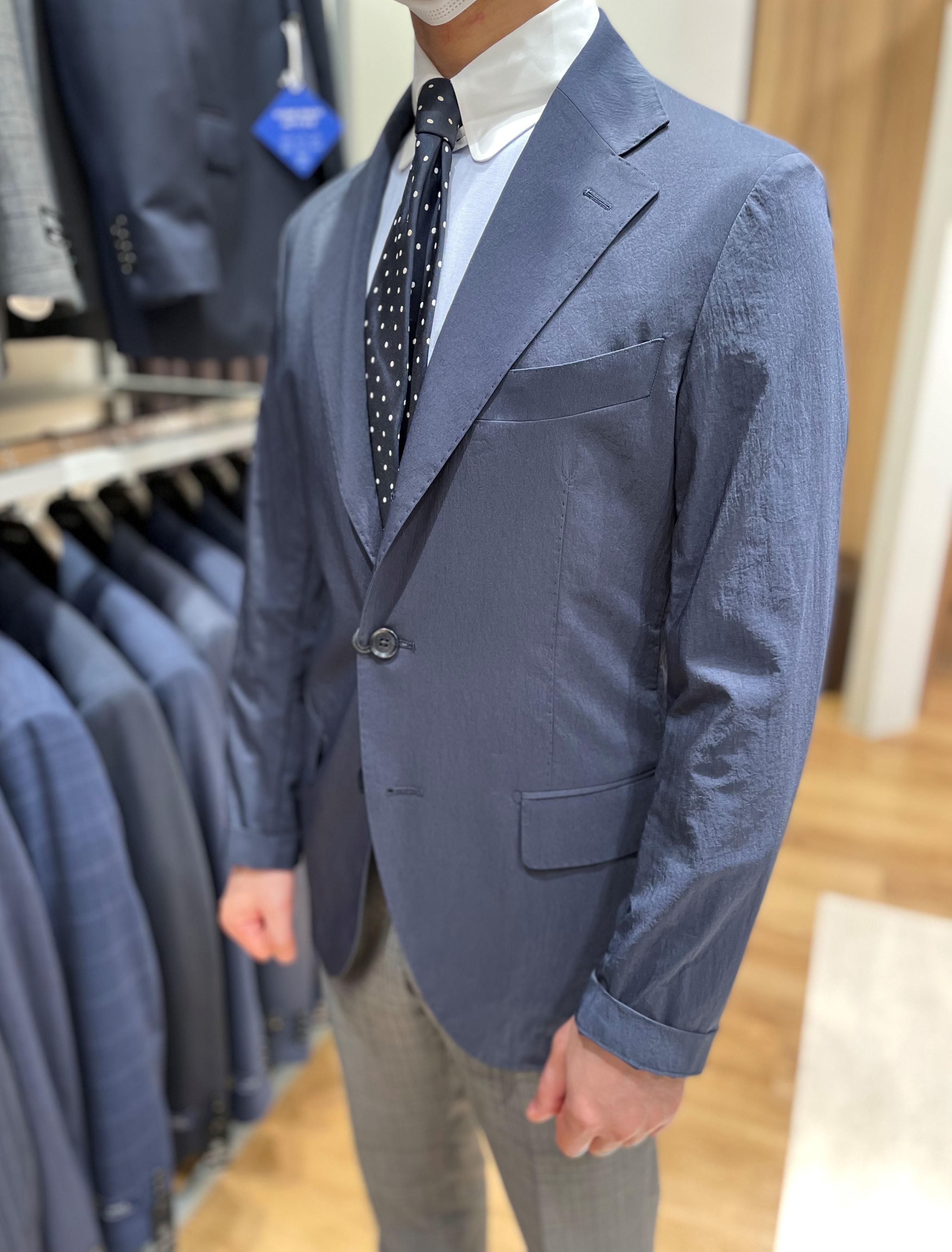 以前のブログでも紹介したセットアップジャケット!ダントツで軽い羽織り心地!シボ感が上品です。