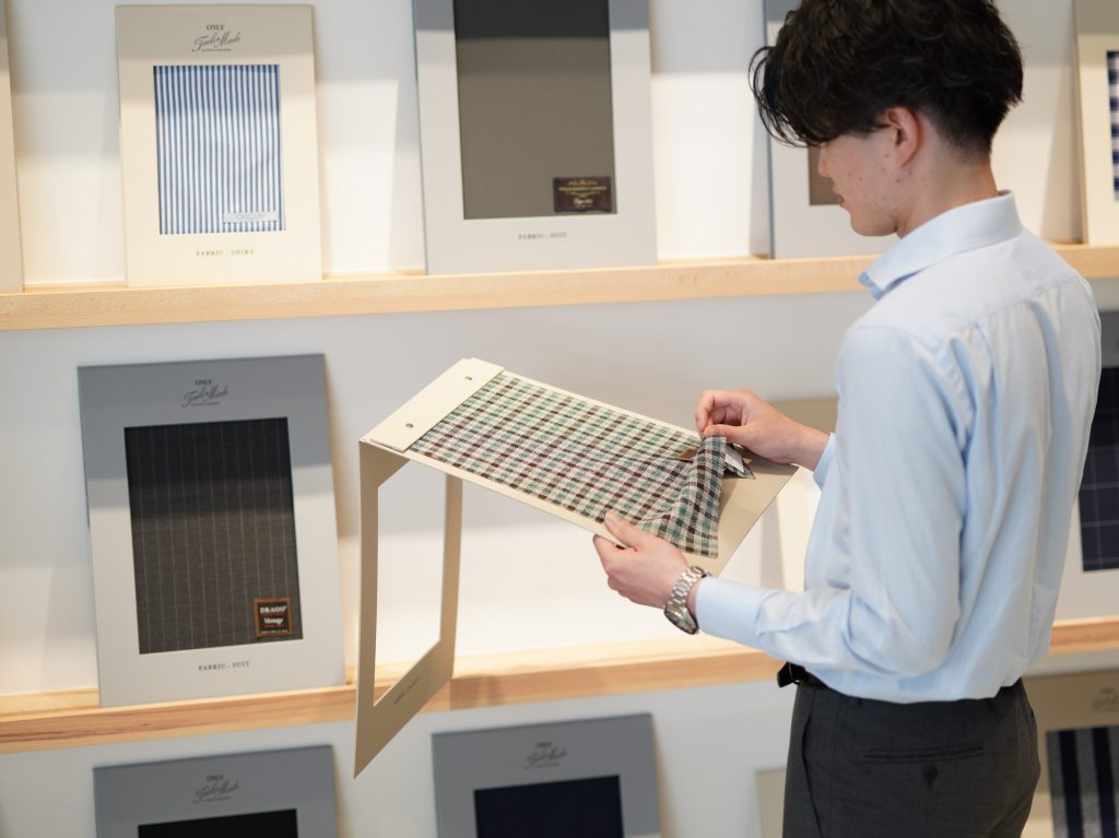手に取って生地に触れることが出来るので、実際の仕上がりをイメージして頂けます。