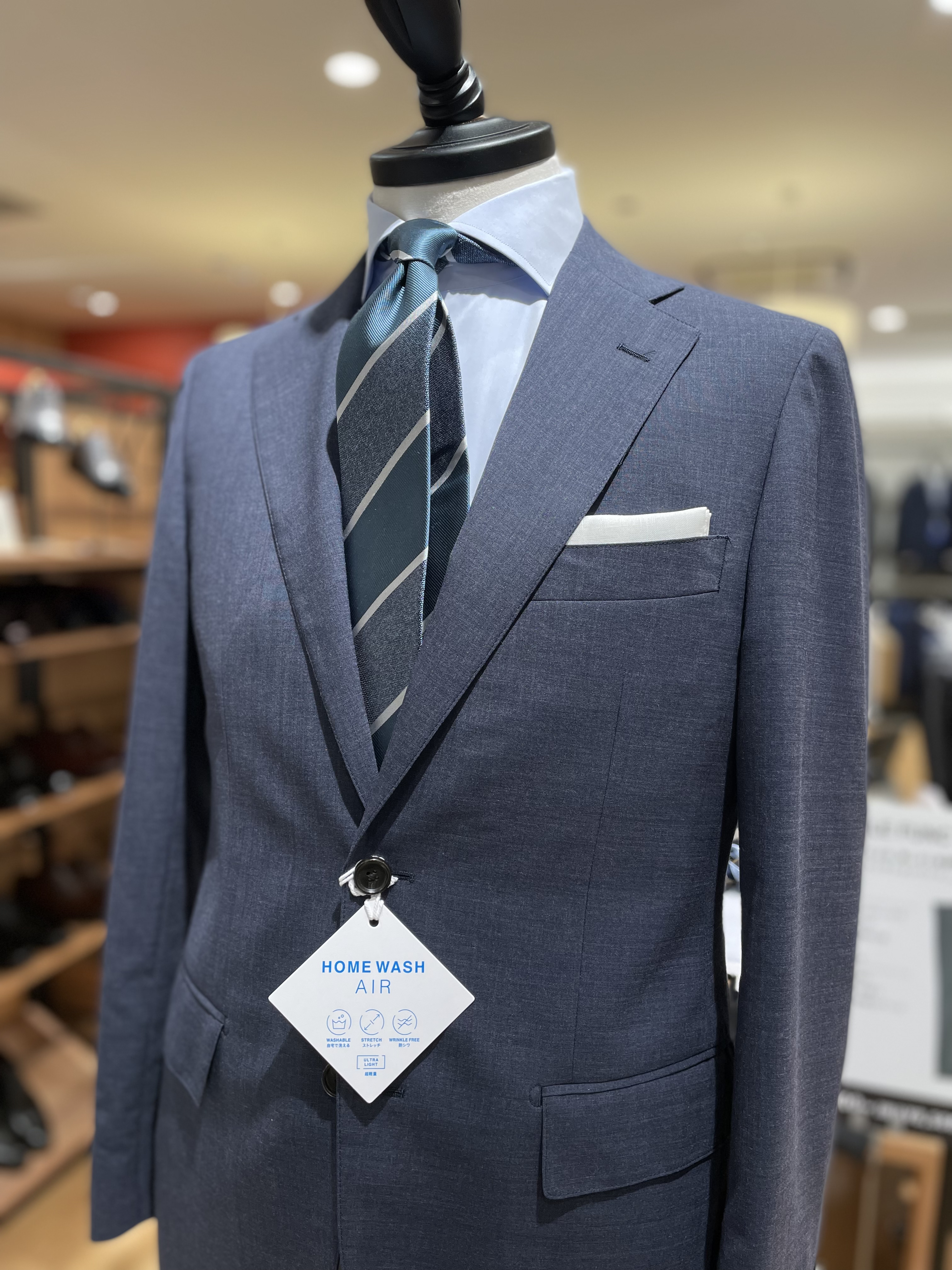 こちらは、毎年人気のHOMEWASHシリーズのスーツを使ったコーディネイト!