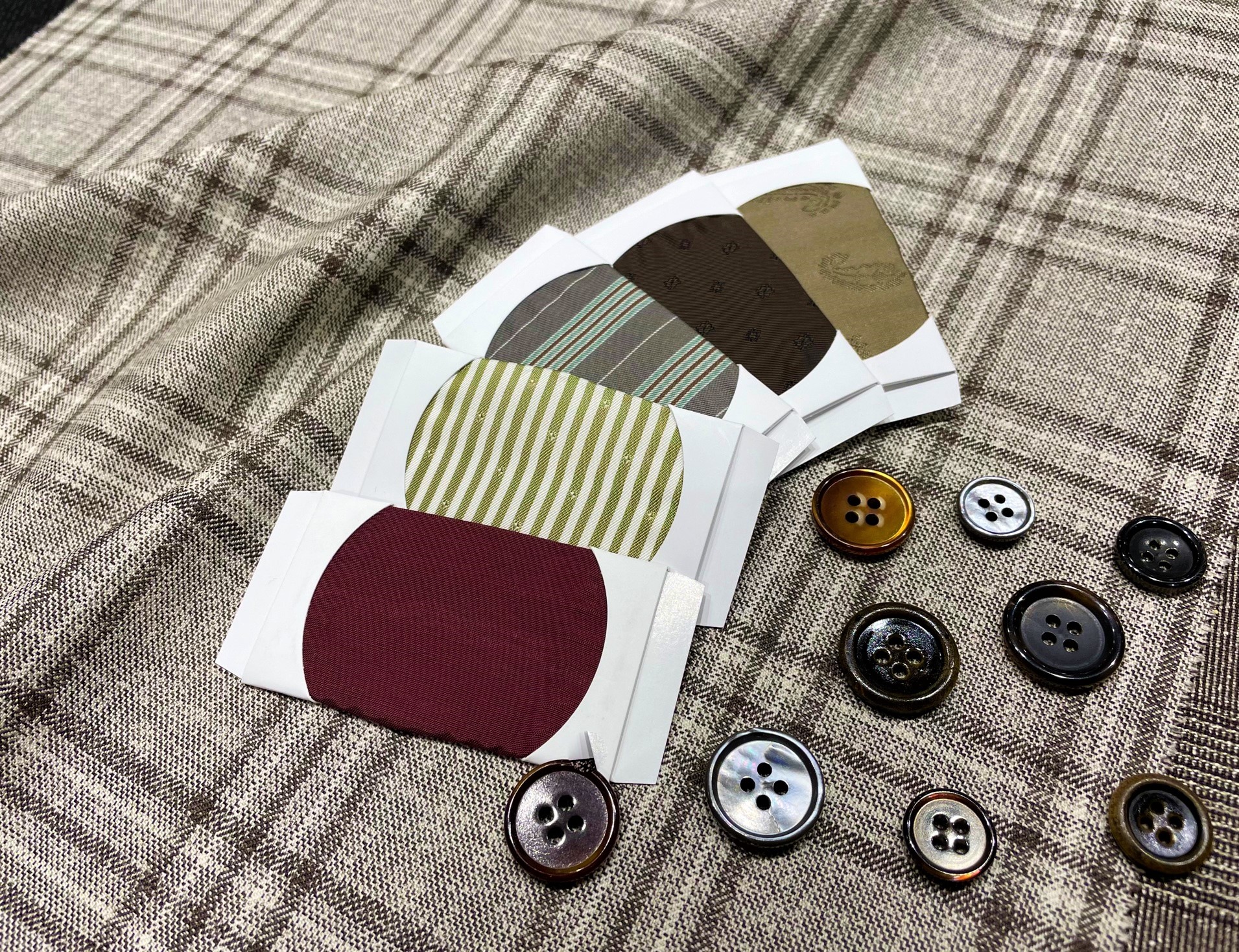 モデル・ボタン・裏地などのオプションも、