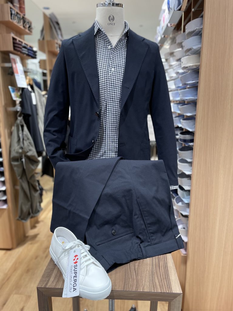 プレミオセットアップシリーズは素材・仕立て(メイドインイタリー)にとことんこだわった、ラグジュアリーなシリーズです。サラッとした素材感とノンストレスなストレッチ性は癖になります!セットアップにも綿・麻が入っているので、リネン混のシャツとの相性抜群です!!