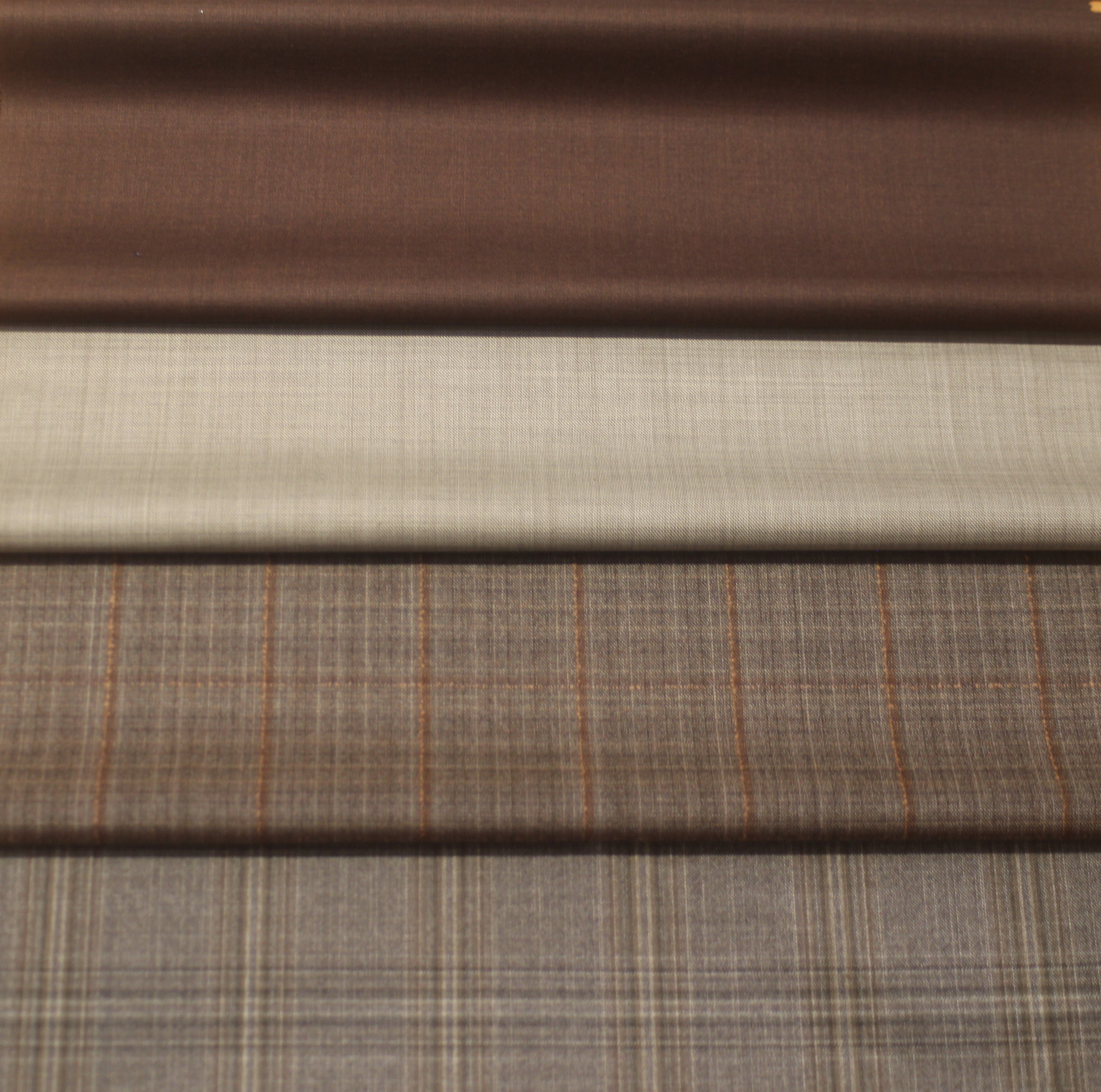 森林をイメージするブラウン、ベージュスーツはSUPER130’sのクオリティの為、着心地とツヤ感は抜群!
