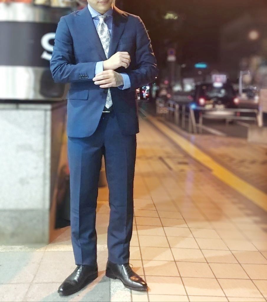 ネイビーのネクタイを入れると爽やかながらも締まったコーディネートになるので、