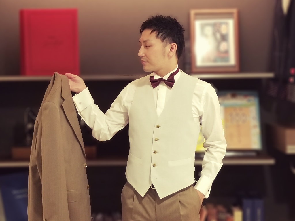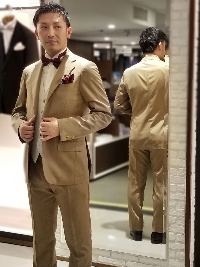 まずは、ベージュスーツのコーディネートのご紹介から💁♂️✨