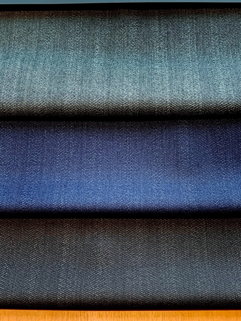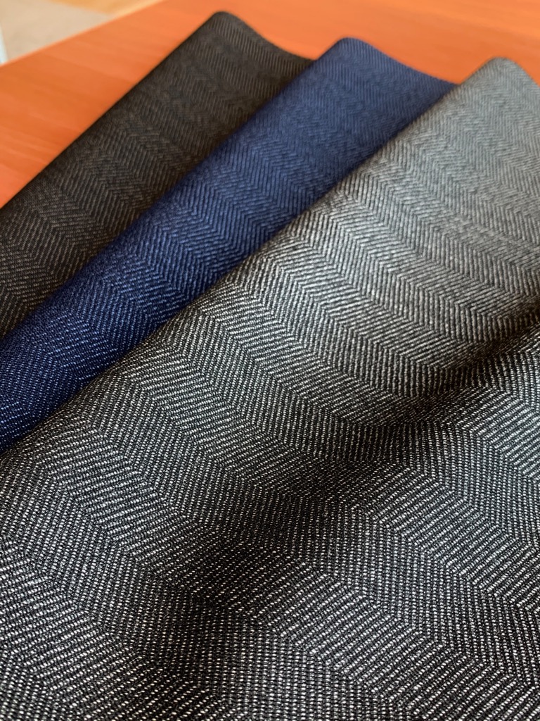 柄はトレンドのクラシック感漂う、無地調・バーズアイ・かすれストライプでの展開です。