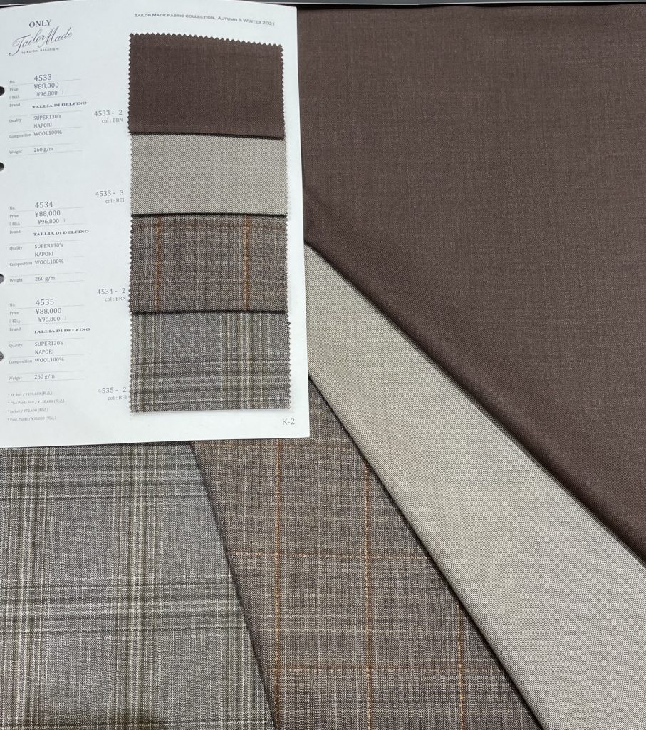 今季イチオシのTALLIA DI DELFINO(タリア・ディ・デルフィノ)のブラウン系の生地です。