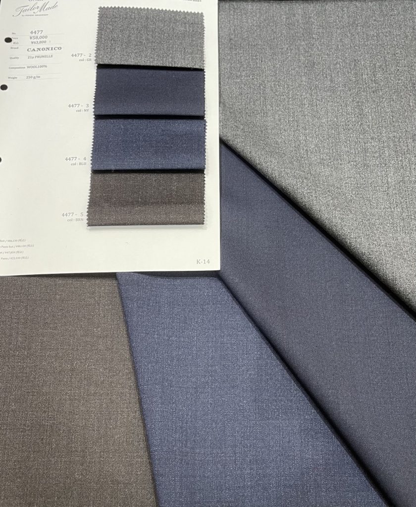 高級生地メーカーの一つで滑らかな質感と上品な艶は仕立て映え間違いなしです!!