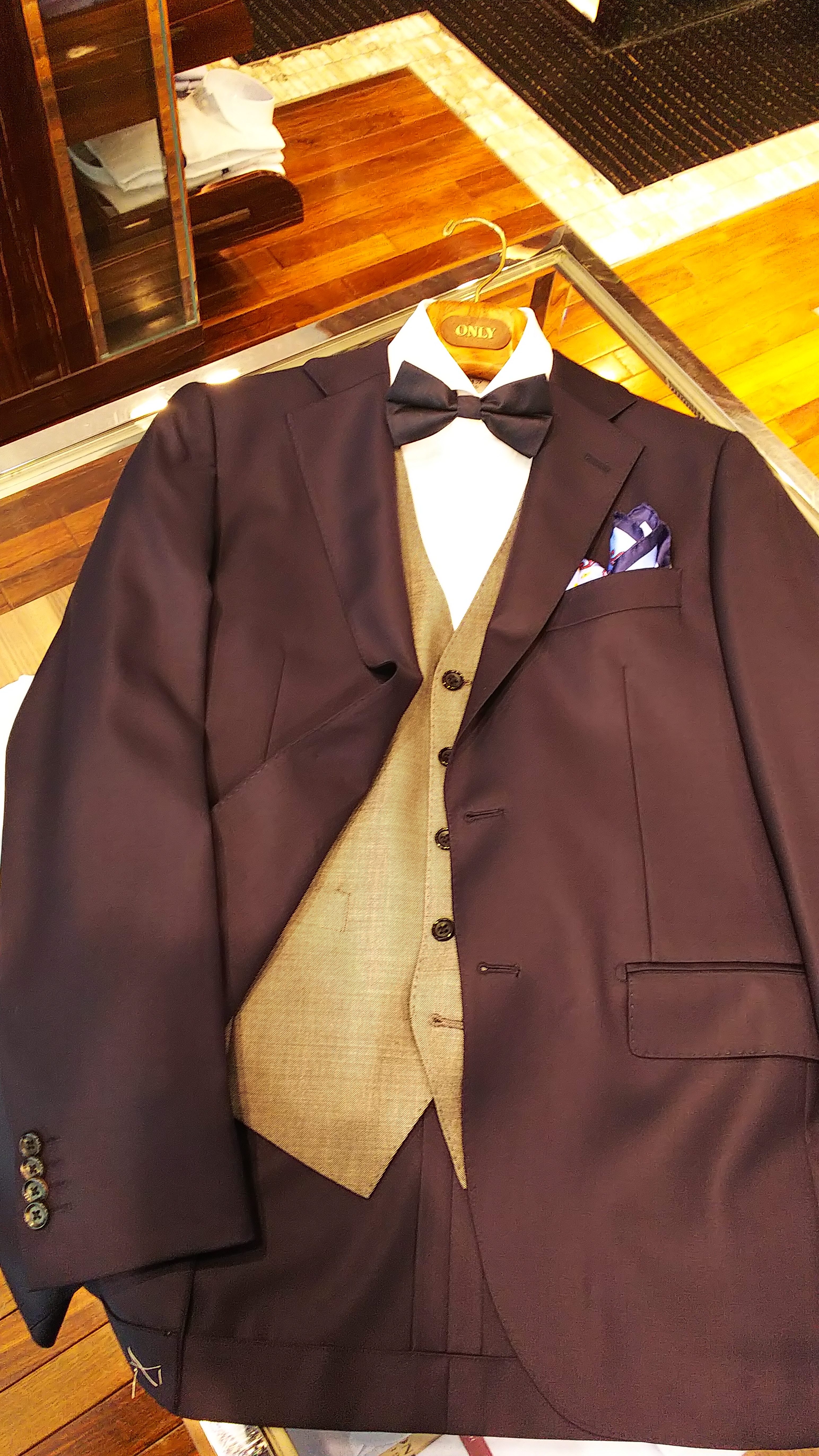スーツの紹介は3ピースにしましたが、ベストだけ色をチェンジしてフォーマル感を上げてみたり、ポケットチーフやネクタイピンをプラスして、華やかさを演出していただくと、お呼びした側の方達にも喜ばれると思います。