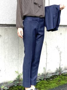 ジャケットはスクエアショルダーとフロントダーツが特徴のマニッシュなモデル、
