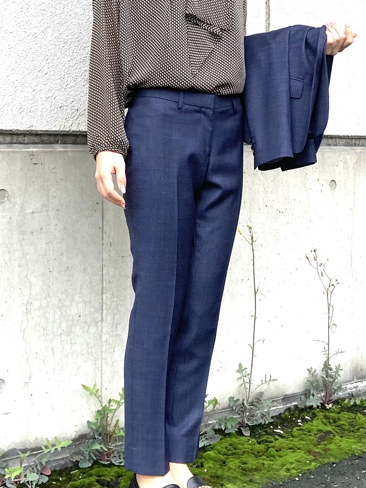 パンツは緩やかなテーパードをきかせたクロップドレングスです。