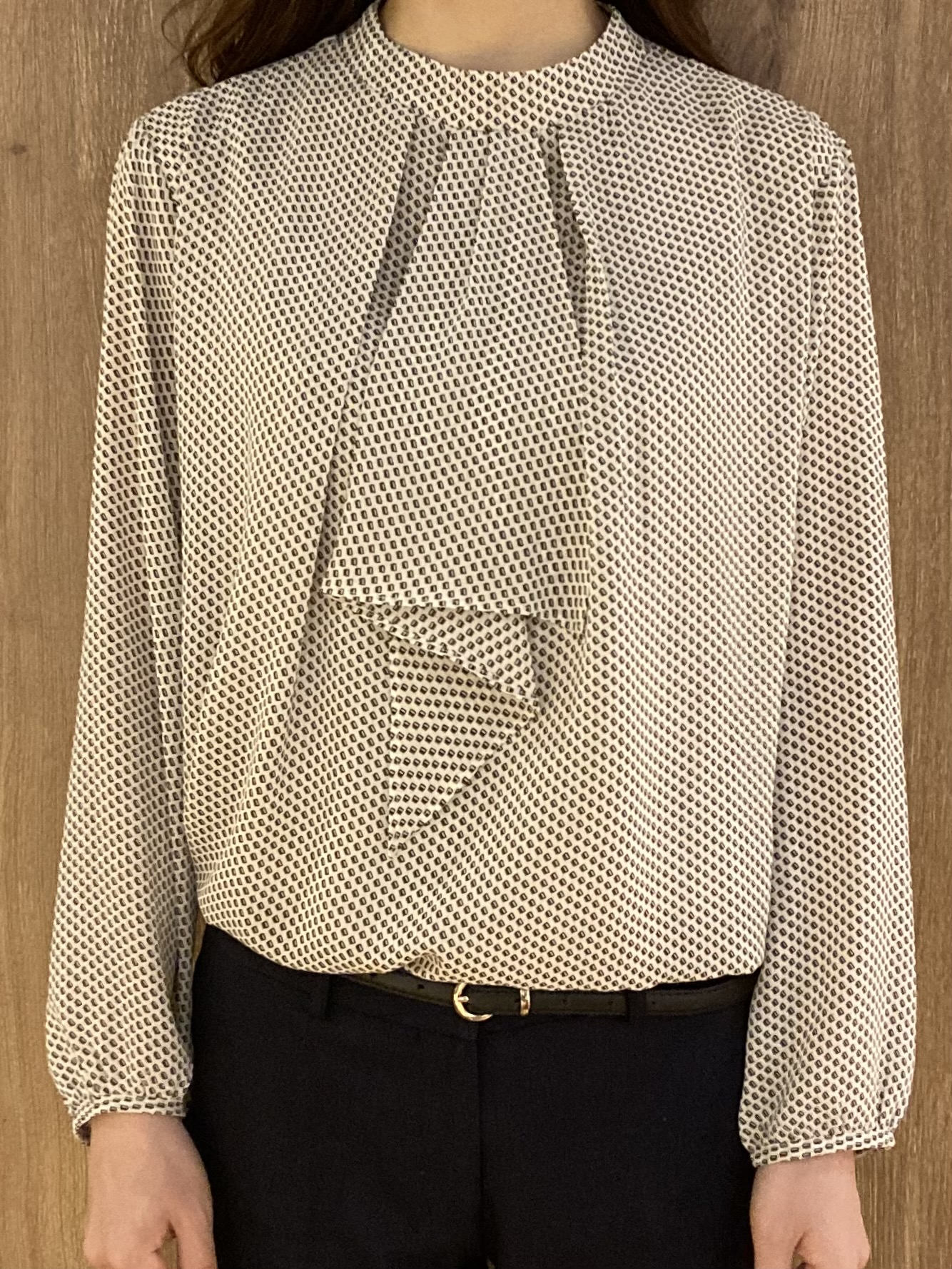 ノスタルジックな色柄が特徴のボウタイブラウスです。