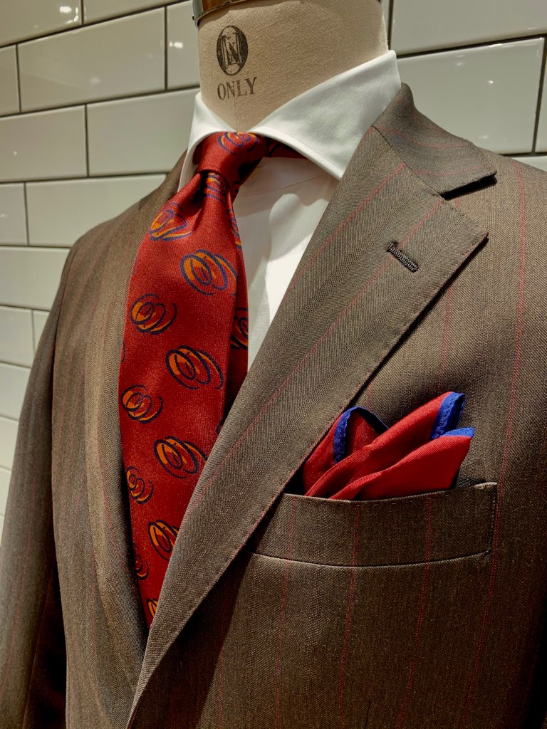 柄×柄のコーディネートや、今季オーダー生地で注目のカラーペン(ベース生地にアクセントで色味の柄が入ったもの)とも相性抜群です👍
