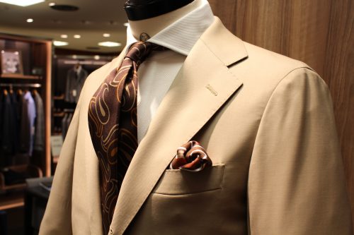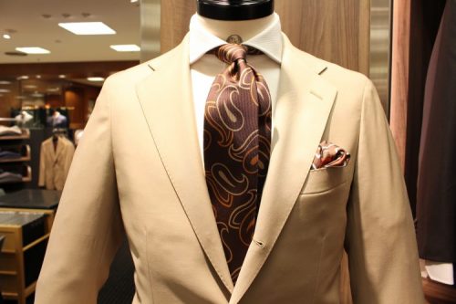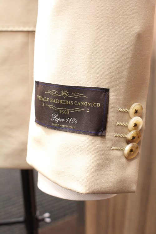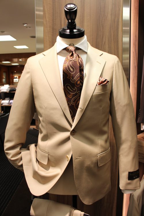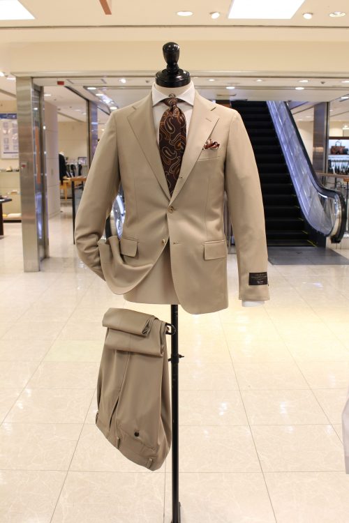 明るすぎないベージュスーツ。260g/mのウエイトがいい塩梅ですね。