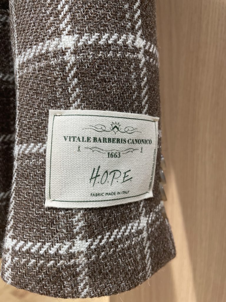 今季の新作ジャケットの中でもイチオシの商品をご紹介致します。それが、イタリア・カノニコ社の誇るサステナブルシリーズ、「H.O.P.E.」生地使用のジャケットです。