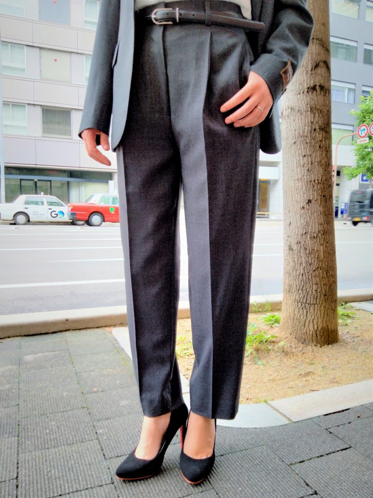 パンツの丈は、春夏商品より4センチ長くなり、裾幅は2センチ細くなっているので、