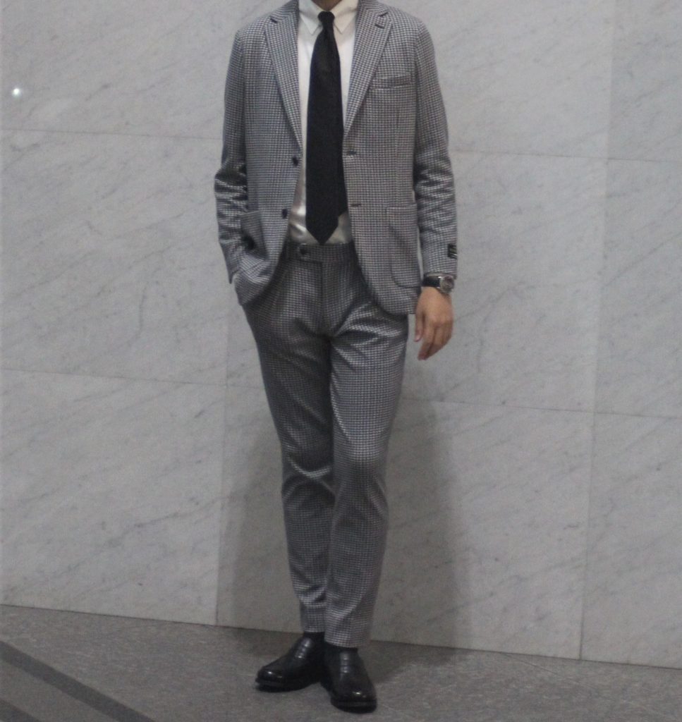 上下で着用するとスーツとしてはもちろん、単品使いもしやすいセットアップです。