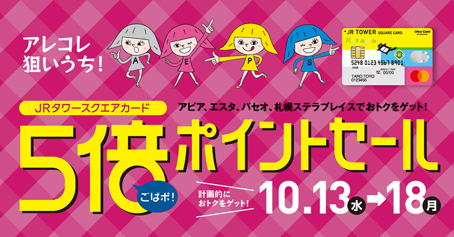 10月13日(水)~10月18日(月)エスタではJRタワースクエアカード「5倍ポイントセール」が開催されております!