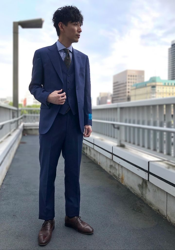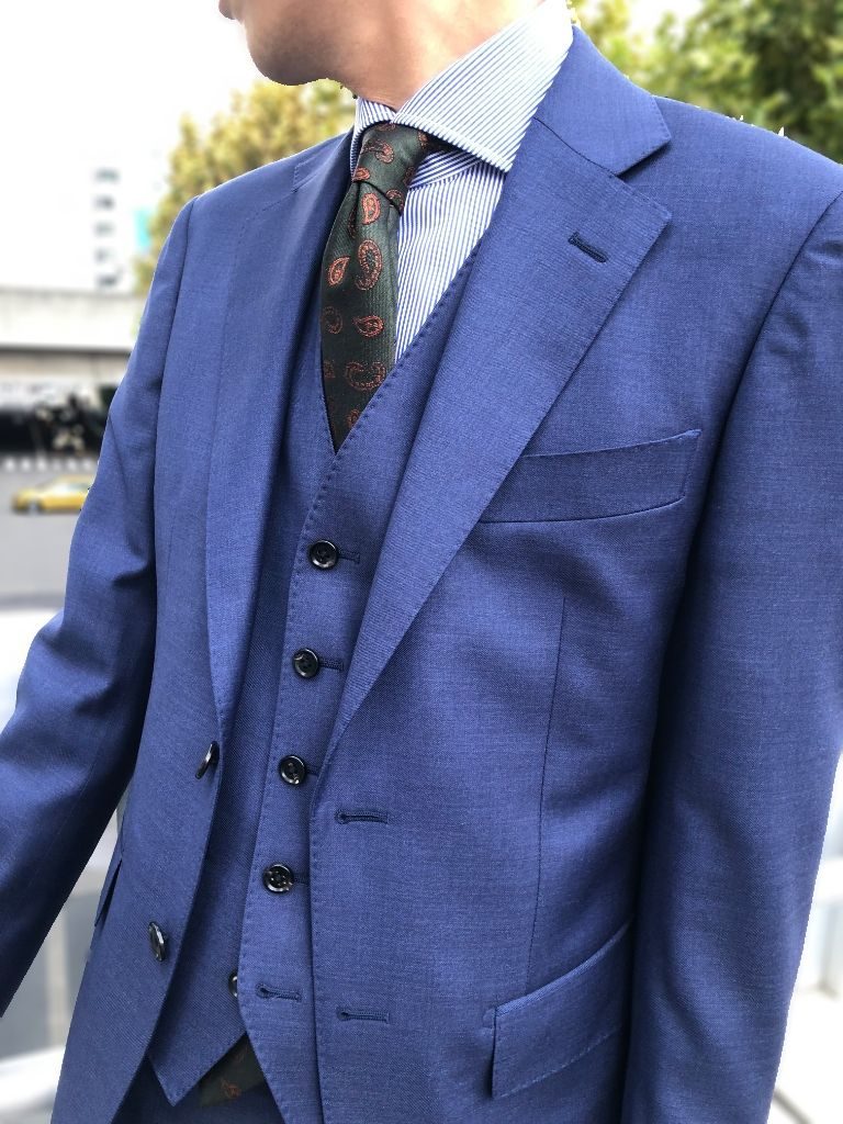 以前のブログでご紹介いたしましたグレーの3ピーススーツの色違いになるのですが、